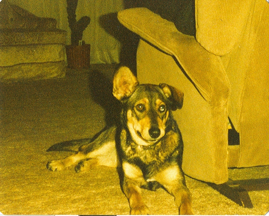 "Poochie" - lived an amazing 22 years. She was a mutt (mix of Shepard, huskie and no one know what else) Her left ear was bent down (as you can see in the pictures) also her left eye was half brown half blue.....she was one of a kind and