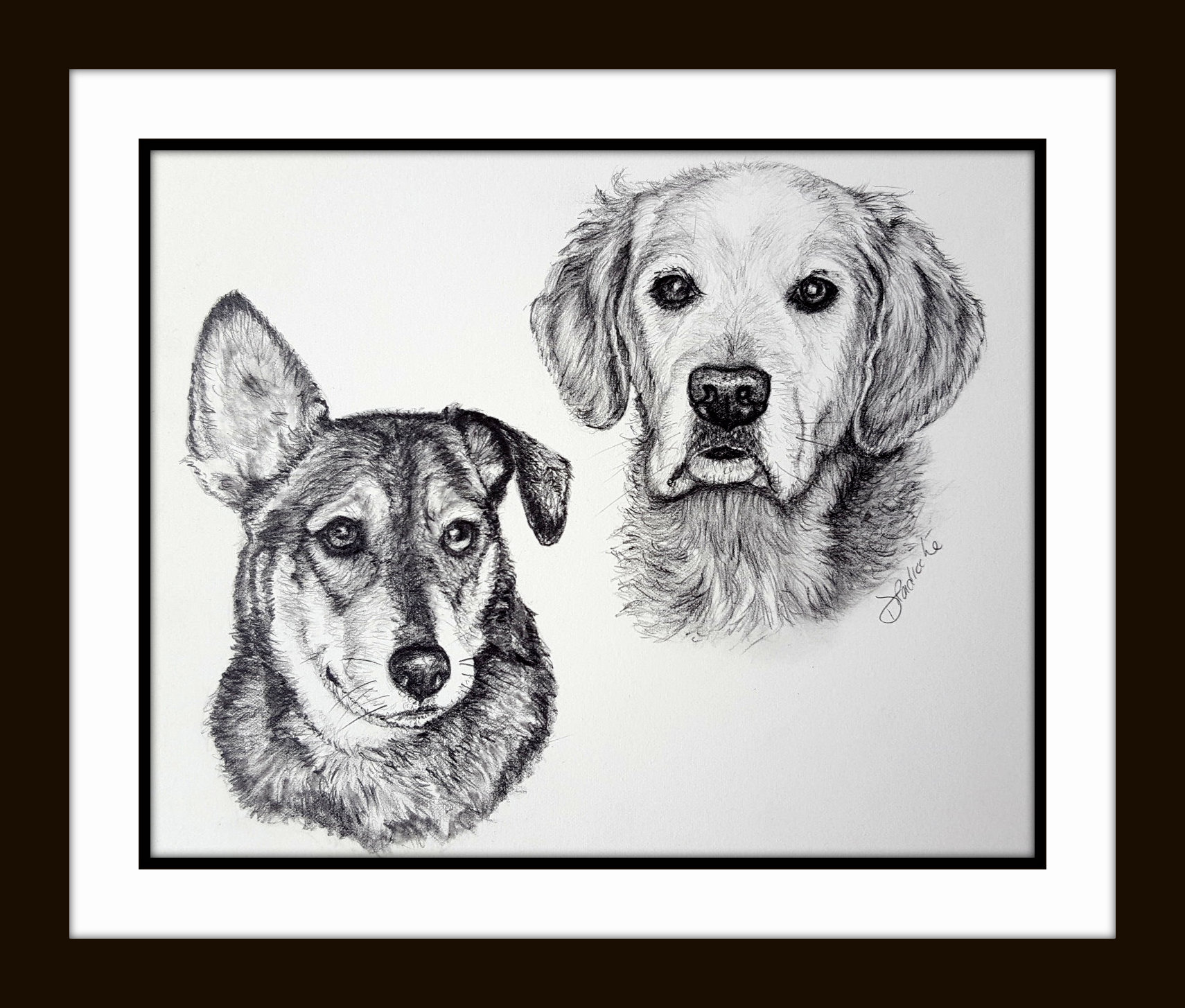 "Poochie & Duke" - artwork is 11 x 14 graphite on watercolor paper. A Timeless Treasure !